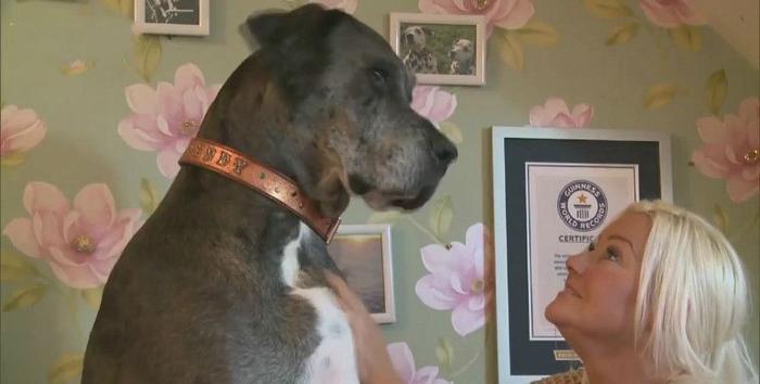大丹犬“宙斯”2012年吉尼斯世界最高犬称号的大丹犬,“宙斯”的主人丹尼斯说:“人们看到它后最常问的问题是:这到底是狗还是马?”