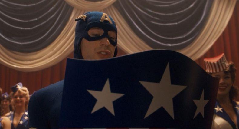 演出盾牌:美队在打完超级士兵血清之后,身体虽然变得非常强壮,但是却被安排四处演出,让他去鼓舞那些在战争前线的士兵们,那时候美队就用上了这个表演用的盾牌,这个盾牌只是一个表演的道具而已,那时候的美国队长有点郁郁不得志,觉得这跟他理想的生活不太一样。