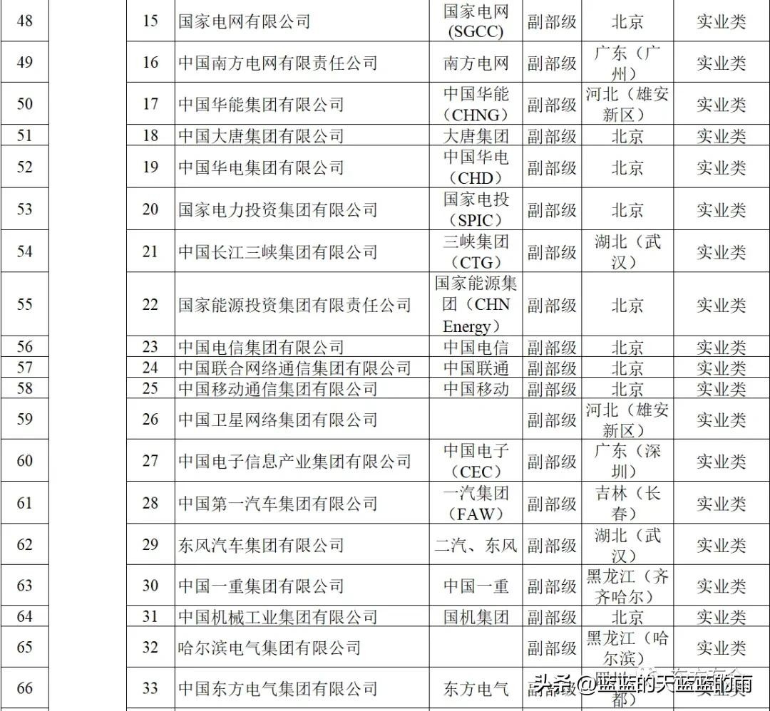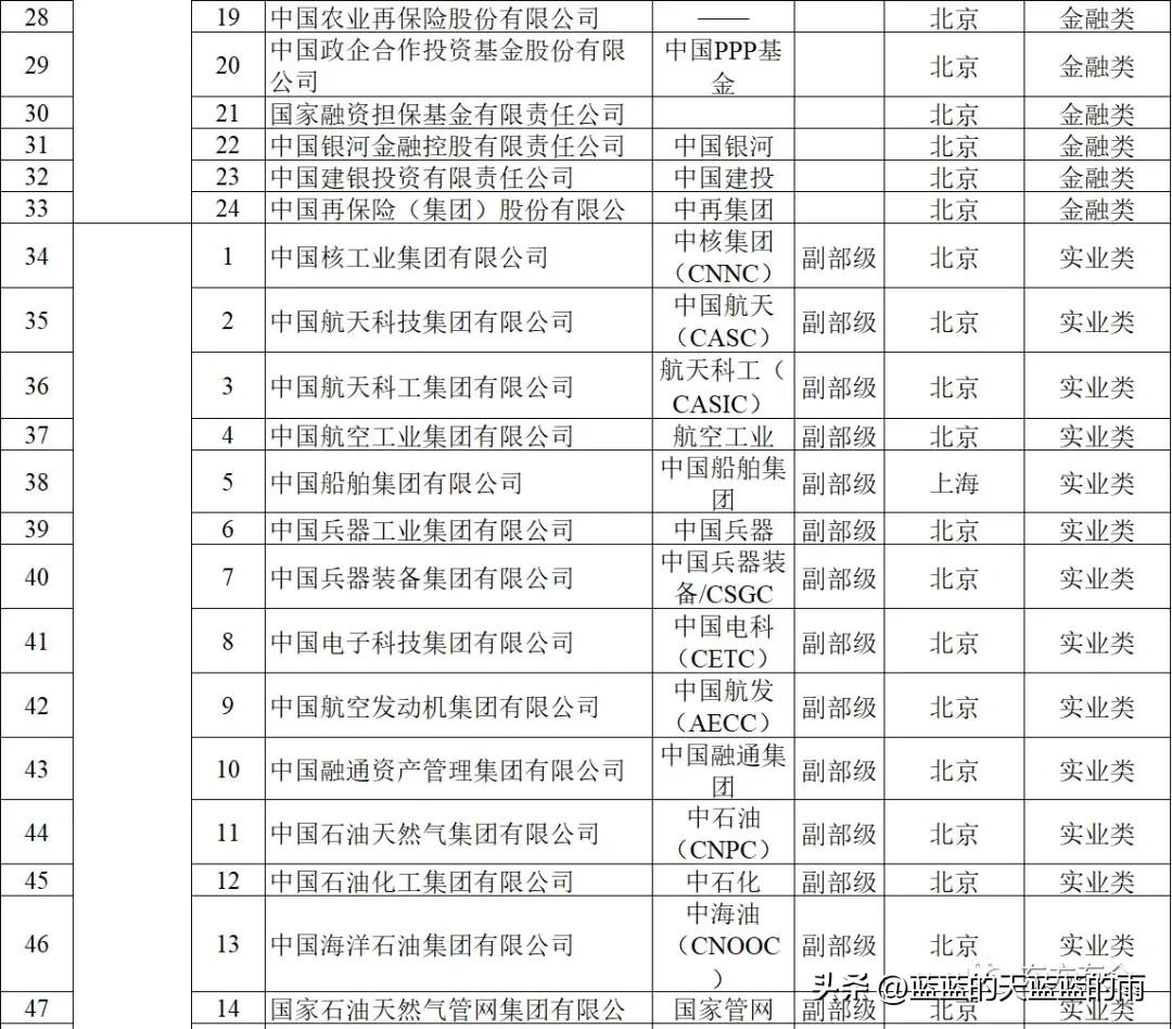 131家央企名录如下:
