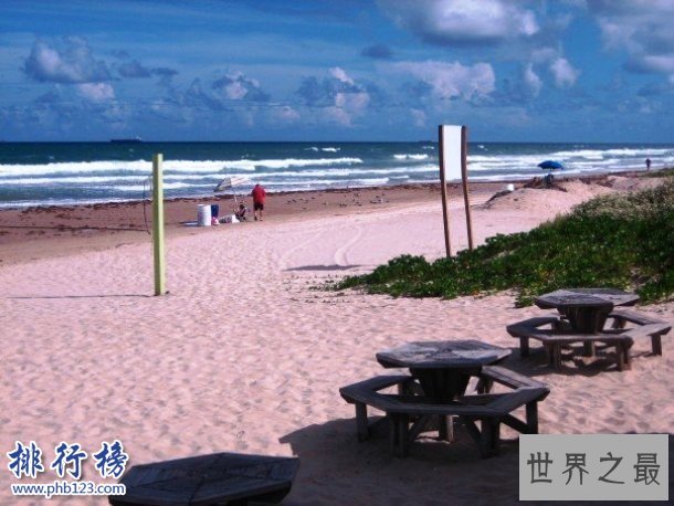 帕德里岛海滩位于帕德里岛的海岸,是德克萨斯州最大的屏障岛屿和世界上最长的屏障岛屿,同时也是美国最长的海滩。这个海滩总长度为113英里,以白色沙滩而闻名,同时还是几种海龟的栖息地。