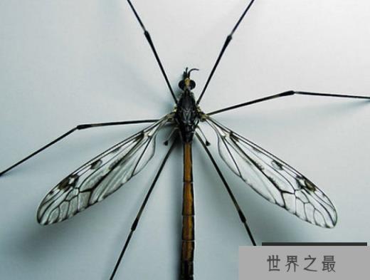 这是地球上目前为止人类已知的体积最大的蚊子,身体长达0.4米,但是这种蚊子也是一种不吸人血的蚊子,相反它还对人类有好处。它一般靠捕食其他蚊子为食,可以有效抑制蚊子的数量。