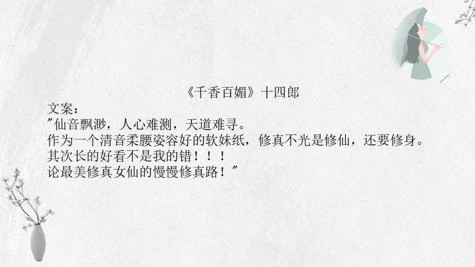 6、 《千香百媚》十四郎 65万字 BG 完结(出版名上册《千香引·雏凤星现》下册《千香引·十二世花》)