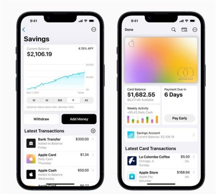 该功能允许 Apple Card 用户在 iPhone 钱包应用中开设高盛的高收益储蓄账户,并开始从他们的 Daily Cash 余额中赚取利息,用户也可以通过关联的银行账户或从他们的 Apple Cash 余额中存入储蓄账户的个人资金赚取利息。新闻稿称,用户设置和管理这一储蓄账户没有手续费、最低存款额和最低余额要求。