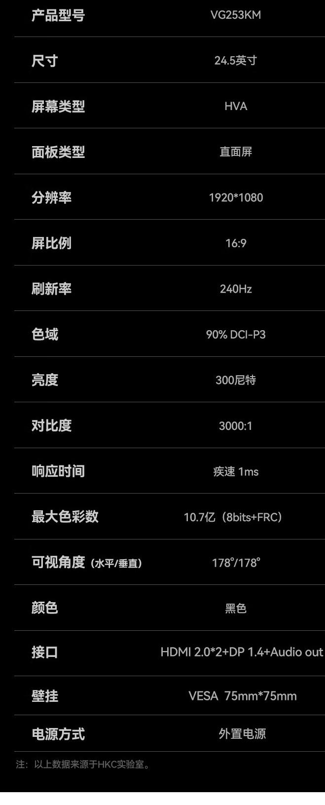 HKC 推出 24.5 英寸 240Hz HVA 显示器,预售价 899 元