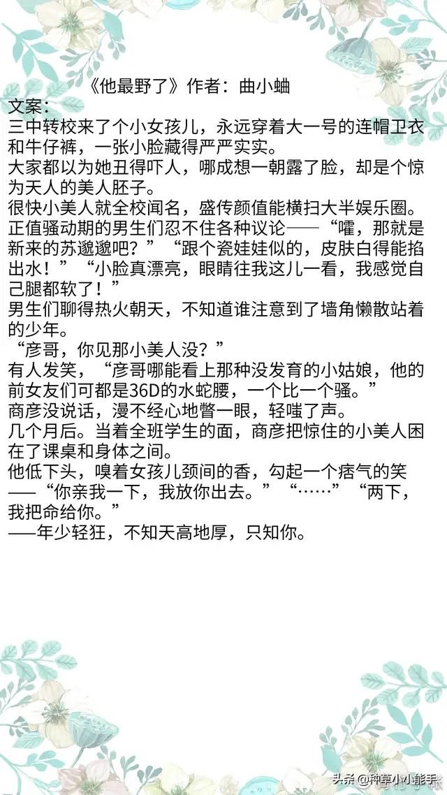 良心推荐五本超级好看的校园文,他最野了~小蛮腰