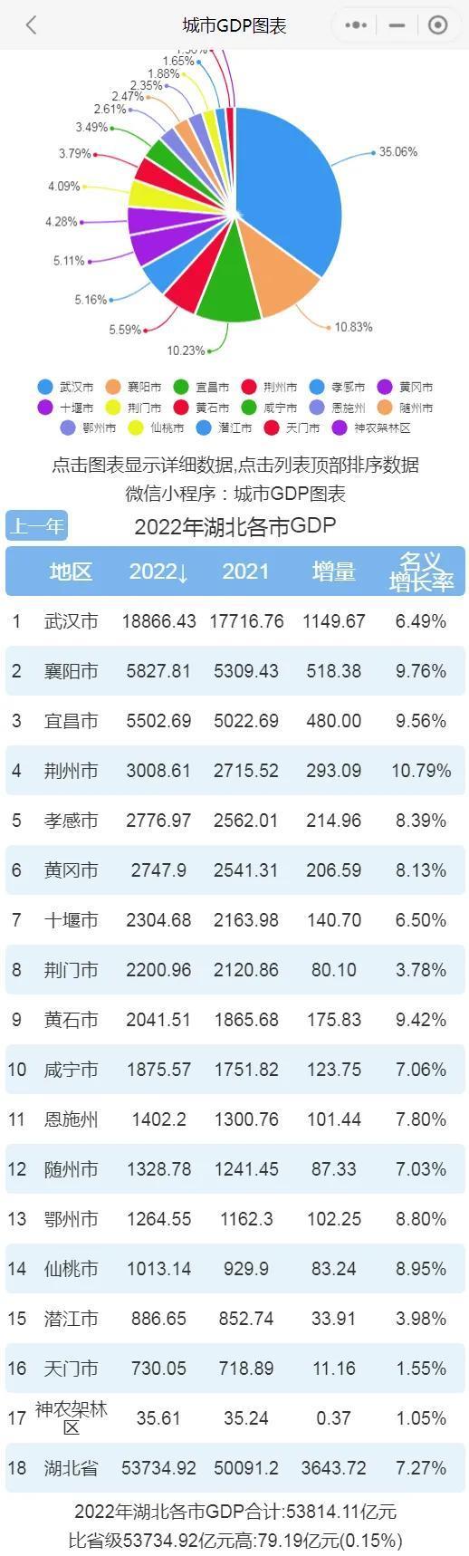 湖北城市GDP排行榜