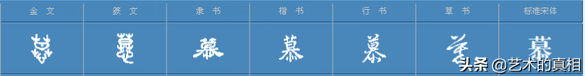 《说文解字》:慕,习也。从心,莫声。意思是::慕,因喜爱而学习、模仿。字形采用“心”作边旁,采用“莫”作声旁。