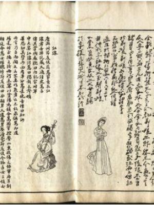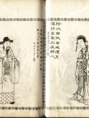 石印本的小说、戏曲等市民通俗读物,也都纷纷增印插图,以争夺市场。当时有些图书,才见刻本面世,就有书局大量石印,低价倾销,以致闹出纠纷。各家书局出版的《红楼梦》(或名《石头记》《金玉缘》),除了每回前有插图二幅外,卷首往往还有主要人物的绣像,有的另印出宽五百九十毫米、高四百八十毫米的巨幅《大观园精细全图》。光绪十四年(一八八八)上海鸿文书局据广陵味潜斋藏本石印的《增像买吗全图书本三国演义》,花边版框,高一百二十八毫米,宽一百零三毫米,四周花边,版心无鱼尾,上标书名,中标卷目,下标页数,此书前竟绘印了一百四十四个人物绣像,与序言、目录单独装成一册。民国二年(一九一三)上海文华山房石印的《绘图燕子笺》,版框高一百七十三毫米,高一百一十八毫米,四周双边,版心单鱼尾,上写书名,下标卷次、出数、出题及页数。四卷分装二册,每册前各配插图十幅,也是一种范例。阿英先生编有《清末石印精图小说戏曲目》,于此类所叙甚详。