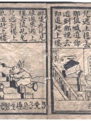 值得注意的影印还有儿童读物值得,印成配图的小本。如上海有文书局石印的《谜语大观》,封面上明标“儿童读物”。我所得的第全新二十一册,内容并不是高清谜语,版心标示的是“滑稽”,类似后来的连环图画。此本高七十八毫米,宽六十四毫米,页面分上下两栏,上文下图,内收四个故事,最长的十二图,最短的四图。