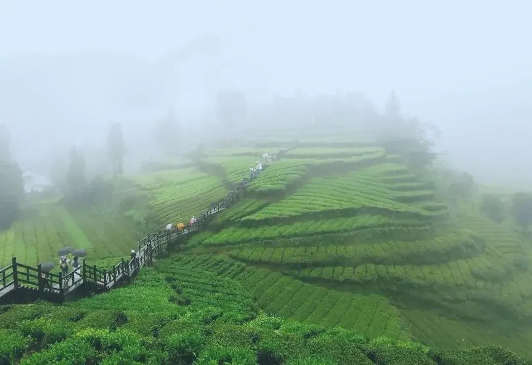 伍家台是当地有名的茶山基地,种植面积十分壮阔,放眼望去极其震撼。
