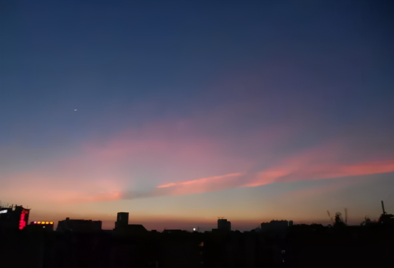 春夏早上,低空空气稳定,尘埃少,如有鲜艳的朝霞,