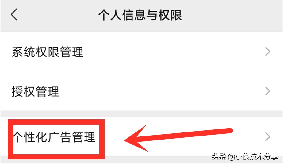 打开之后,我们就可以看到有一个【个性化广告管理】的设置开关