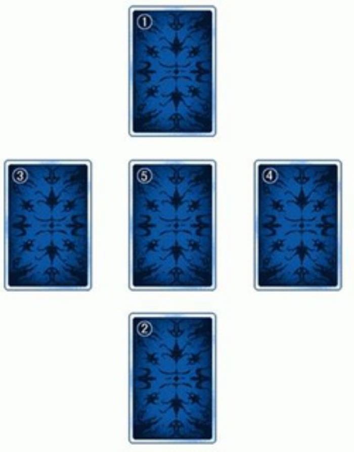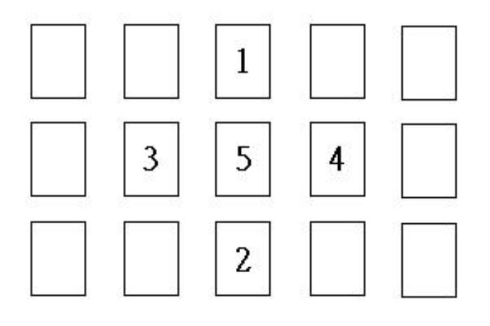 吉普赛十字法解析:适用类型:爱情问题占卜适用范围:22张大阿卡纳、56张小阿卡纳、78张塔罗牌。(如果是初学,建议先只使用大阿尔卡纳牌来进行占卜。因为这样所使用的牌张数比较少,便于记住牌意。等熟悉后,再加入小阿尔卡纳牌。)吉普赛十字法如何摆牌:洗牌后从最上面一张开始抽取。如上图所示,从第一排的最左边开始放第一张,由左而右,依序放完第一排的五张牌。第一排的五张牌都放满后,接着放第二、第三排的牌,剩下的牌将它整齐置于一边即可。依图示中的位置,将序号1到5这几张牌依序翻开。吉普赛十字法各位置释义:序号1的位置表示对方目前的心情及想法。序号2的位置表示目前自己的状况。序号3的位置表示自己与对方的相处方式,采取什么样的态度较好。序号4的位置表示两人目前的周遭环境状况,也可以看出有无情敌或阻碍的出现。序号5的位置表示两人关系最后的结果。解牌顺序:解牌时,五张牌不可一下全部翻开,而是翻开一张后,解释完毕,再按顺序翻开另一张进行解读。解牌顺序依照序号5的顺序。这样完全解读后,再综合全部信息对问卜者提出建议。
