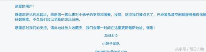 同日,“小妹子”论坛团队对外发布了一则通知,称“被点名了,已经紧急清空删除服务器仅保留好数据库,不久我们会以全新的论坛归来。”每日人物试图通过该团队留下的邮箱与之联系,未得回复。此外,百度贴吧等社交平台上仍可搜到“小妹子”论坛资源分享。