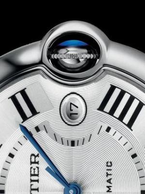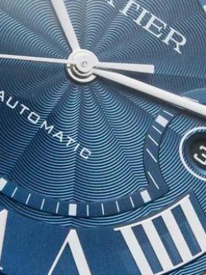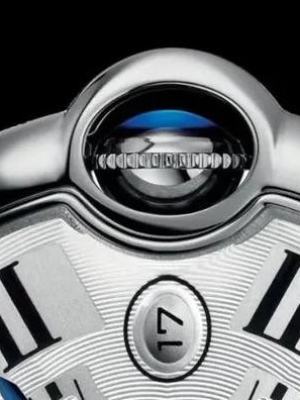 蓝气球的表盘非常具有辨识度:扭索饰纹表盘,罗马数字,铁轨状分钟圈,蓝色剑形精钢指针,与Cartier的审美传统一脉相承。由于表冠的影响,罗马数字偏离了一般的圆形轨道,卡地亚是什么机芯,向内凹进。
