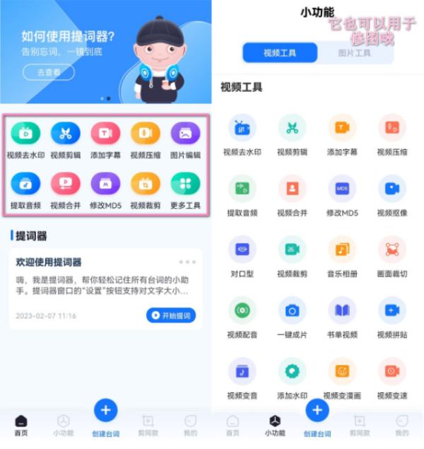 看到这个名字,是不是以为它只是个提词软件?可别着急下结论!其实它拥有视频剪辑、调色、配音、加贴纸等实用工具,操作简单,好上手。