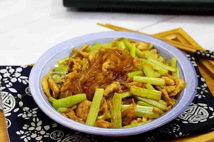 第三道【芹菜鸡肉炒粉条】好多人都喜欢的一道家常美食,芹菜粉条是好搭配,再放点肉就更完美了,香而下饭