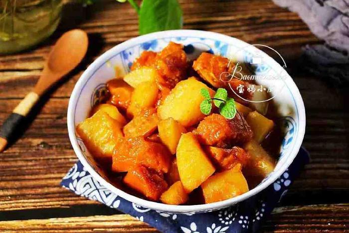 第二道【南瓜炖土豆】从小到大吃不够,时令的南瓜和土豆,不放鸡蛋不放肉,用炖的方法,保留它们的原汁原味,味道好极了,白嘴都能吃到饱。