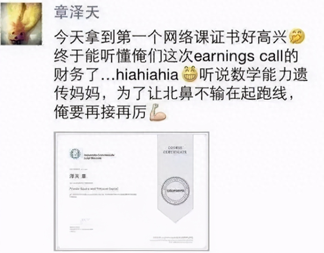 都说,一孕傻三年,但章泽天像是一个例外。在孕期,她不仅参加了网上投资课的学习,还取得含金量颇高的证书。