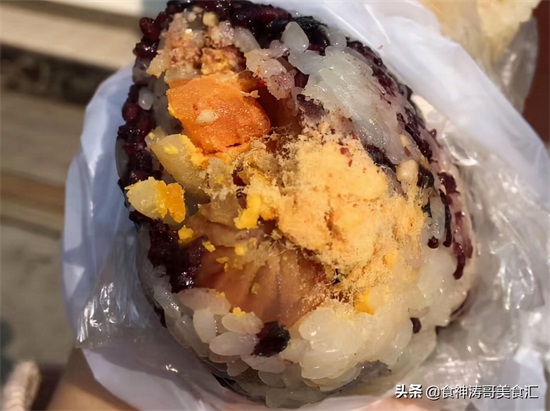 根据当地人描述,徐州以前大街小巷还有些卖糍饭的摊子,现在没有多少了。糯米饭就是拿一块糯米卷上各种馅料,可以自己选。喜欢吃甜的放花生,糖什么的,加上肉松火腿肠,辣的话加上一包海带丝。糍饭便宜而且非常非常的压饿,早上吃一个,中午都不饿,特别过瘾。