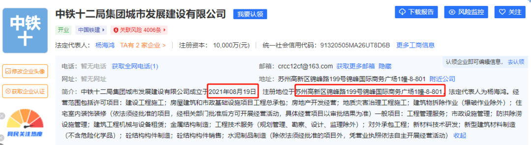 这个也是中国铁建股份有限公司旗下公司,但是和那个开发花语江南、拙政江南的中铁建房地产集团有限公司不是同一家公司。