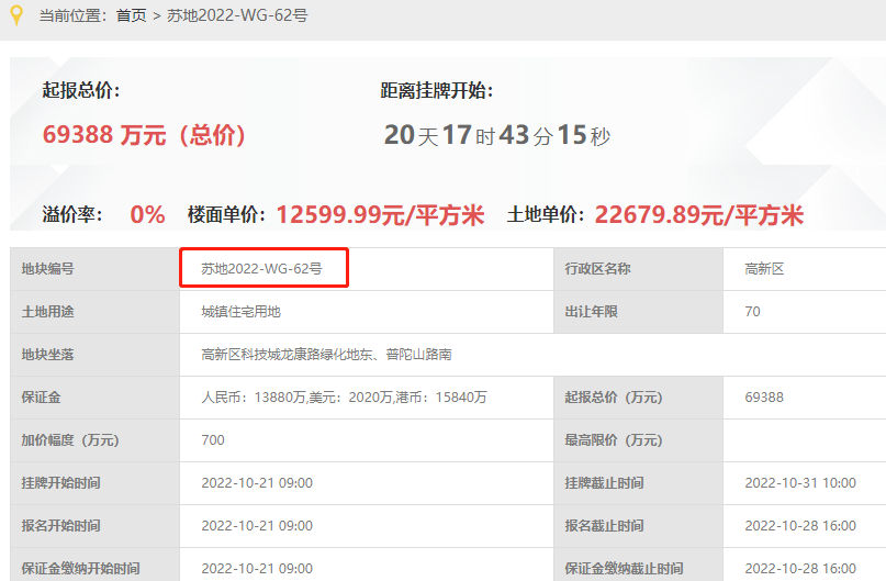 让人匪夷所思的是,位置更好的62和63号地,起拍楼面价为12599.93元/平米;位置更差的64号地,居然起拍楼面价为12999.98元/平米。