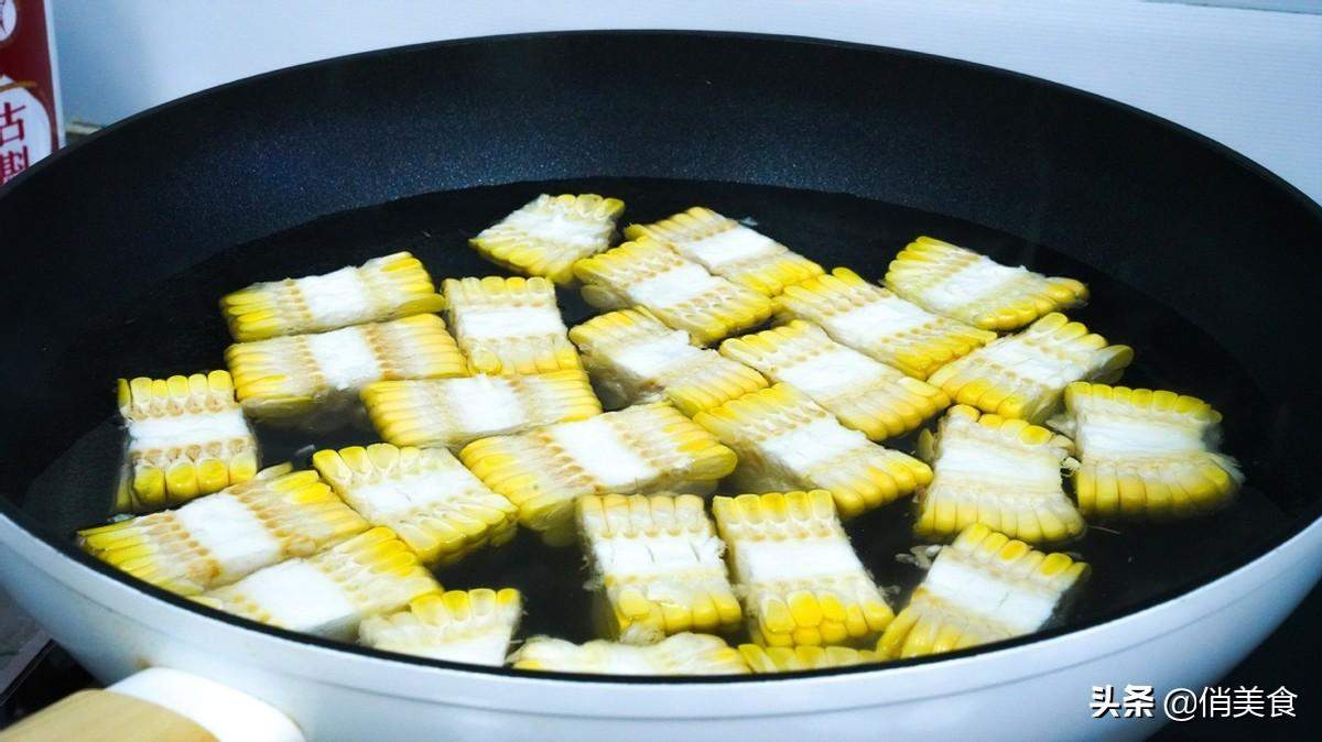 5、水开后把玉米放入锅中需要焯一下水,玉米焯水后再来炖汤,汤才会更鲜,如果不嫌麻烦,做成玉米粒来炖汤也不错。