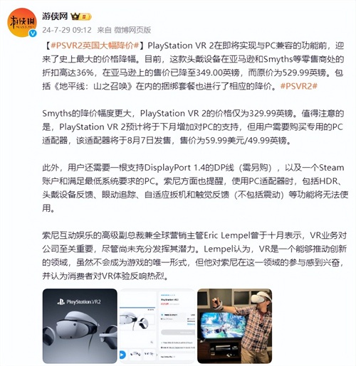 而索尼也于去年8月推出PSVR2的PC适配器,来扩大用户群体。于此同时,在去年8月,亚马逊和Smyths等零售商处PSVR2也迎来大幅度降价。