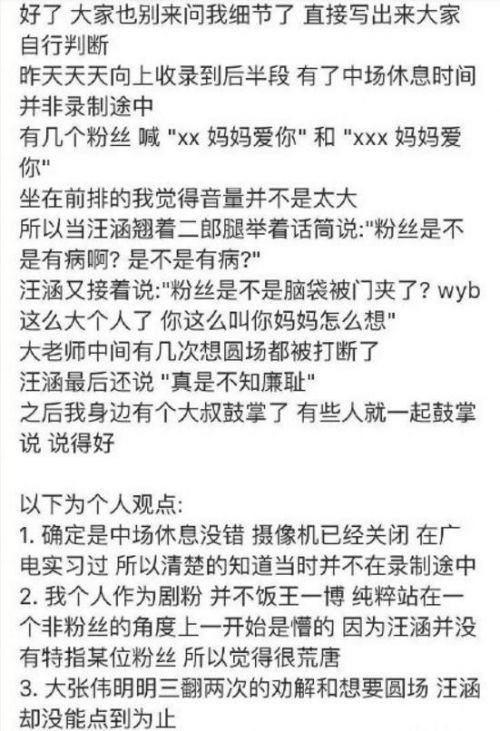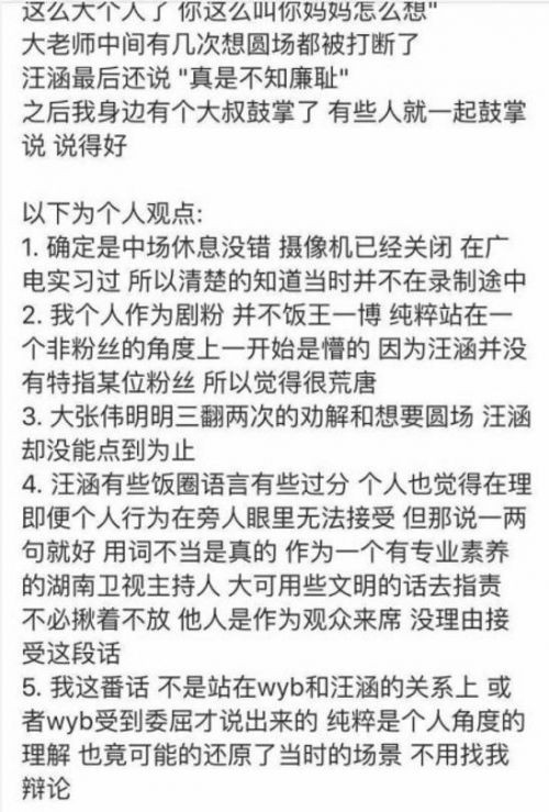 近日,在《天天向上》的节目录制现场,有网友称汪涵把王一博的粉丝给骂了。许多网友都表示不相信,随后这名网友又晒出了自己描述的现场细节,让网友自行揣测。