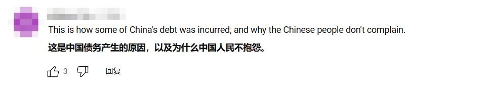“合着中国的债务都是这么来的啊?政府都把钱拿去给贫困山区的孩子修建空中校车了?我说怎么明明中国政府也背着债,但是中国老百姓却从来不抱怨呢,原来门道在这儿呢。”
