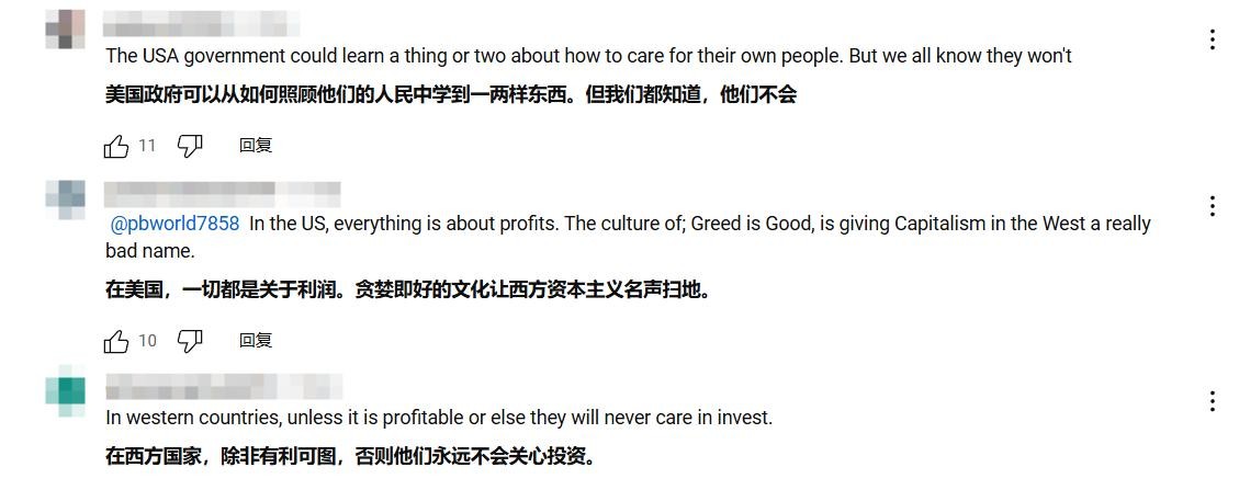 “看看人家的政府,再看看美国的。要是美国政府也学学人家的好,在‘为人民服务’这件事情上学到点东西就好了。但很遗憾,我们的政府是什么尿性我们都清楚,要他们为人民服务?还不如杀了他们得了。”