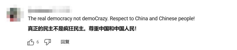 “瞧瞧人家,这才叫真正的德谟克拉西。中国的德先生是为民做主(Democracy),我们的是逼民抽风(DemoCrazy)。真正的民主应该是良政,而非疯政。向中国和中国人民致以我崇高的敬意!”
