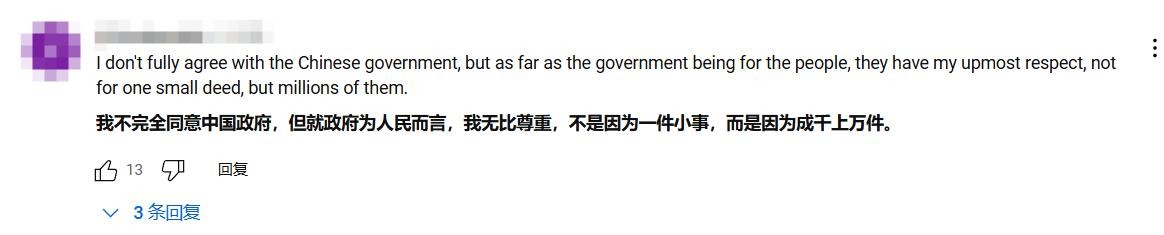 我在这里给大家展示的这些留言,都是我从CCTV视频新闻频道的油管官号的评论区里搬运回来的。今年1月中旬,该频道往油管上上传了一段时长不到2分钟的视频,它的浏览量并不算高,截至目前也就才5.6万播放,但是评论区里的留言互动倒是意外挺热闹,而且绝大多数英语留言都是持正面评价的。对于一个央视的账号来说,在油管这样的平台上,这样的西洋景虽不能说是绝无仅有吧,但也的确是弥足可贵了。