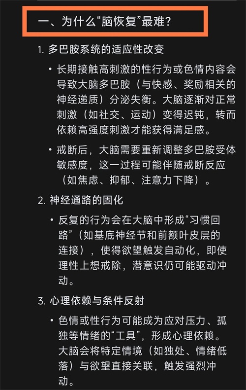 戒色过程中,大脑恢复之所以被认为是最具挑战性的部分,主要与成瘾机制、神经可塑性以及心理依赖密切相关。以下从科学角度解释这一现象,并提供一些控制大脑的方法: