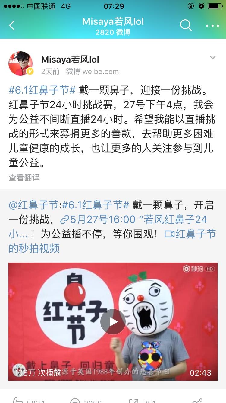 最近若风也去参见这个公益活动,挑战连续直播24小时,所得收入全部捐献给需要帮助的小朋友。绝对的电竞正能量,经过这次事件若风也改变了自己的易黑体质,得到了网友的一片赞赏。