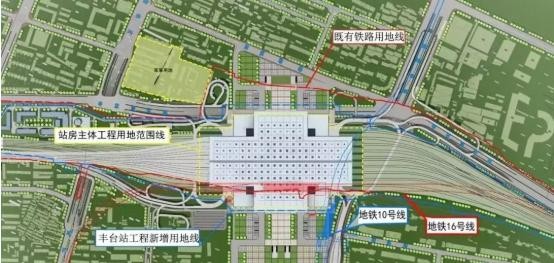 丰台站改建工程于2018年9月动工,为普高共站设计,规模为17台32线。受征拆范围限制,与其他车站不同的是,高速场和普速场为立体双层设计。