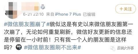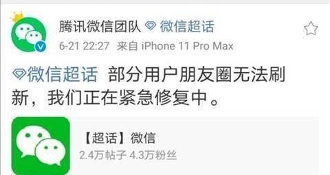 对此,21日晚22:27分,“腾讯微信团队”发布微博称,部分用户朋友圈无法刷新,我们