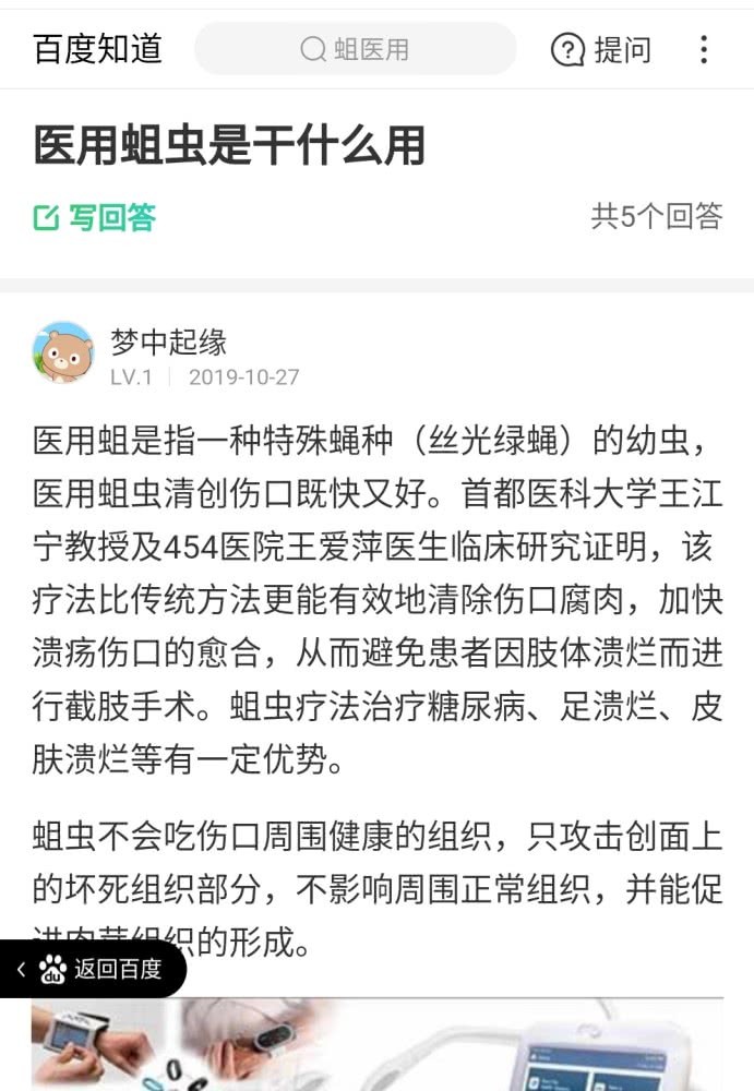 最后在有些网友的评论中发现,在某些特定的情况下蛆虫是可以帮助患者去除死去的组织细胞。