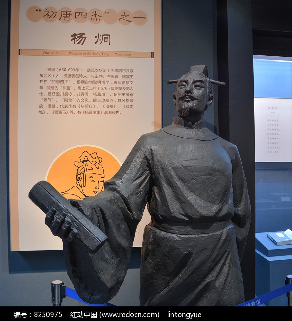 《从军行》:“烽火照西京,心中自不平。牙璋辞凤阙,铁骑绕龙城。雪暗凋旗画,风多杂鼓声。宁为百夫长,胜作一书生。” 该诗以边塞征战为背景,通过描绘战士们的英勇形象和战斗场面,体现了诗人立志报国、建功立业的决心和信念,风格雄浑豪放,语言简练生动《盈川集》:杨炯的文集,其中包含了众多的赋、序、表、碑、铭、志、状等作品,展现了他在文学创作上的多方面才华,其作品文辞优美,用典恰当,具有较高的文学价值