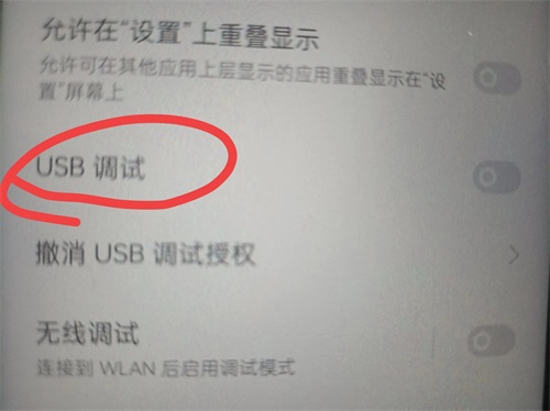当我们的手机需要连接电脑时,同样要打开开发者模式,然后打开USB调试才能正常的传输文件,没有打开该功能,那么就只能充电(如上图所示)