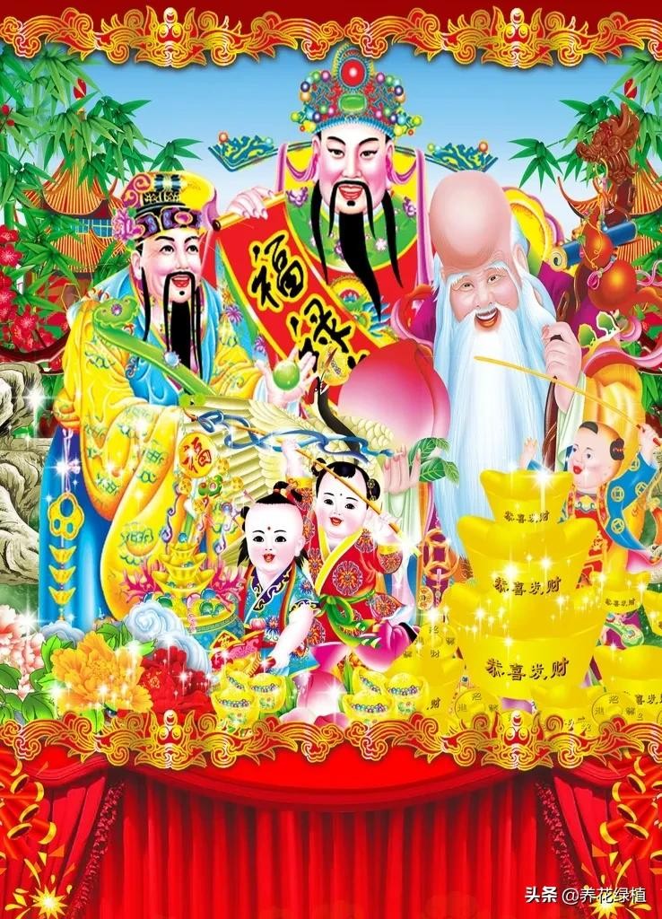 除夕夜,福禄寿三星高照,迎接新年的到来。寓意新的一年吉祥幸福、健康长寿和生活富裕。