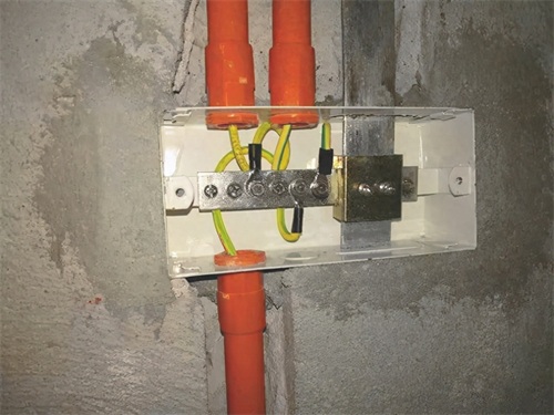 在后期砌墙的时候就把等电位端子箱安装到镀锌扁铁上,然后将等电位端子箱安装在墙体内,并留有相应的线管用来穿我们的连接线,这样就完成了卫生间内等电位的预埋。