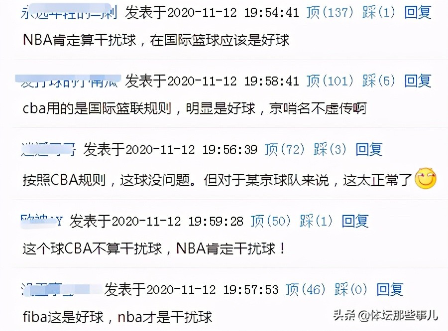 所以这到底是好球还是干扰球?胡金秋干扰球用什么规则?裁判的操作让网友一致表示,“NBA肯定算干扰球,国际篮球应该是好球”,可是CBA到底是用国际篮联规则,还是NBA规则,难道裁判心里没有数吗?显然,胡金秋这一次的篮板球争抢,如果是适用国际篮联规则,那么裁判就不应该吹罚干扰球,但裁判有自己的衡量标准,说不定在裁判眼中就算是国际篮联规则,胡金秋这一个圈上拨球行为都是干扰球。