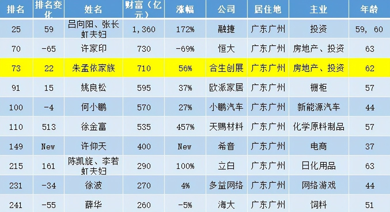 朱一航是谁?他是地产大佬、合生创展集团创始人朱孟依的长子。根据2021年胡润百富榜显示,朱孟依家族财富达到710亿元,同比增长56%,排在全国第73位、上榜广州企业家第3位。