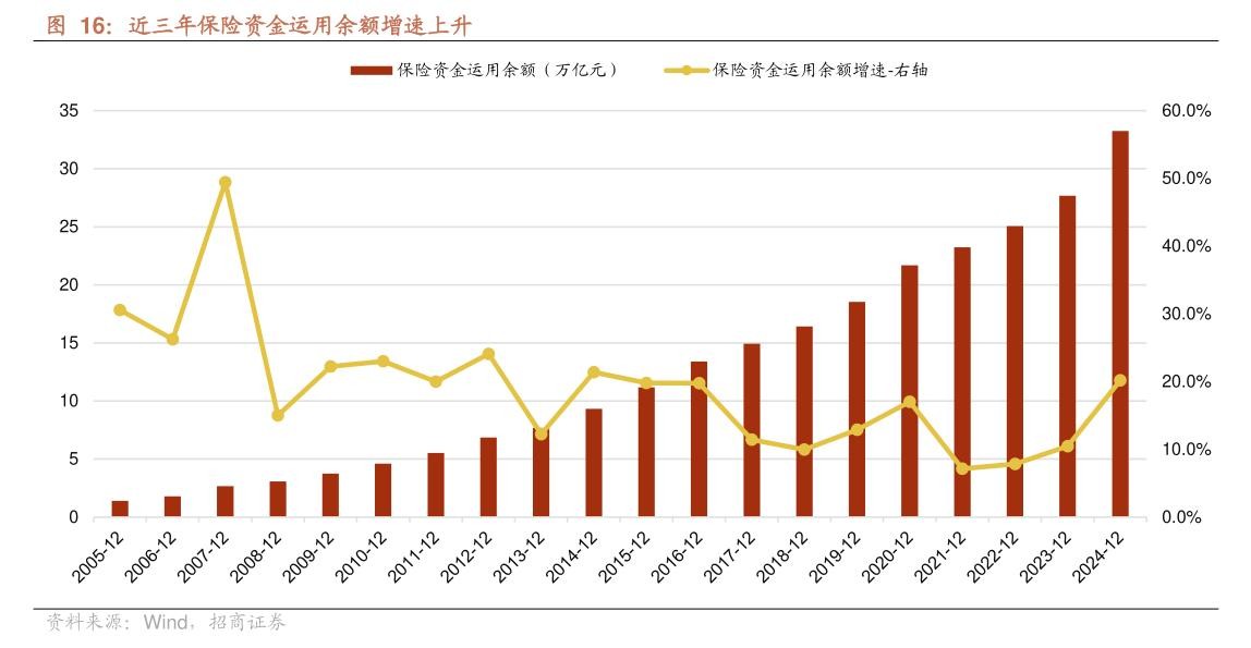 国家金融监管总局发布的数据显示,截至2024年末,人身险公司股票配置余额2.27万亿元,占人身险公司资金运用余额的7.57%,较2023年末增加4518亿元;财产险公司股票配置余额1601亿元,占财产险公司资金运用余额的7.21%,较2023年末增加336亿元。