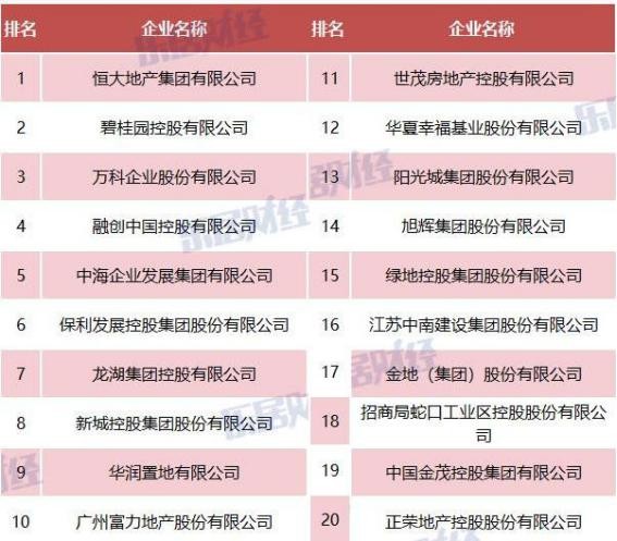 | 2020年中国房地产开发企业前20强