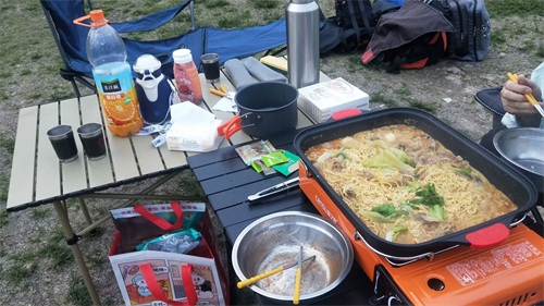 1.我带了两副炉具。一副是卡式炉,一副是三星猛火炉,带两副是防止旅行过程中一副出问题而有个备胎,也可以在必要的时候两个火力全开,各做各的节省时间。我的卡式炉主要用于烧烤、炒菜和火锅;猛火炉主要是煮面。我一般一次出游会带五六个小气罐,250容量的。一般一个气罐可以用四顿饭两天的时间,五六个就用十天左右。我在外面也不是顿顿都做饭,也会吃吃当地的特色饭,所以五六个气罐维持一二十天的旅程足够了,也不占地方。卡式炉有自带的平底锅和烧烤架。猛火炉配备了两个钛合金套锅和一个煎锅。