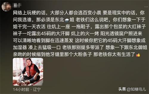 这么抽象的讨论,让网友们打开了眼界,于是开始制作了各种东北雨姐和别人的二选一选择题,以此钓鱼,来获得更多网友们的抽象评论。