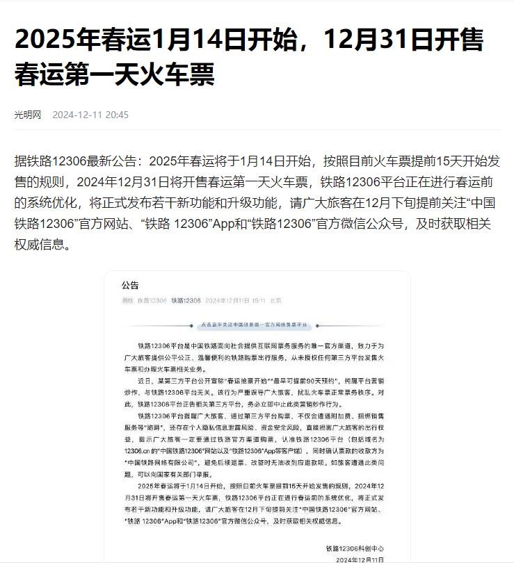 在了解了2025年春运时间之后,来看看2025年春运第一天的火车票什么时候开始抢?