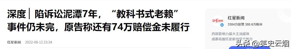1.红星新闻 2022-08-12 深度| 陷诉讼泥潭7年,“教科书式老赖”事件仍未完,原告称还有74万赔偿金未履行